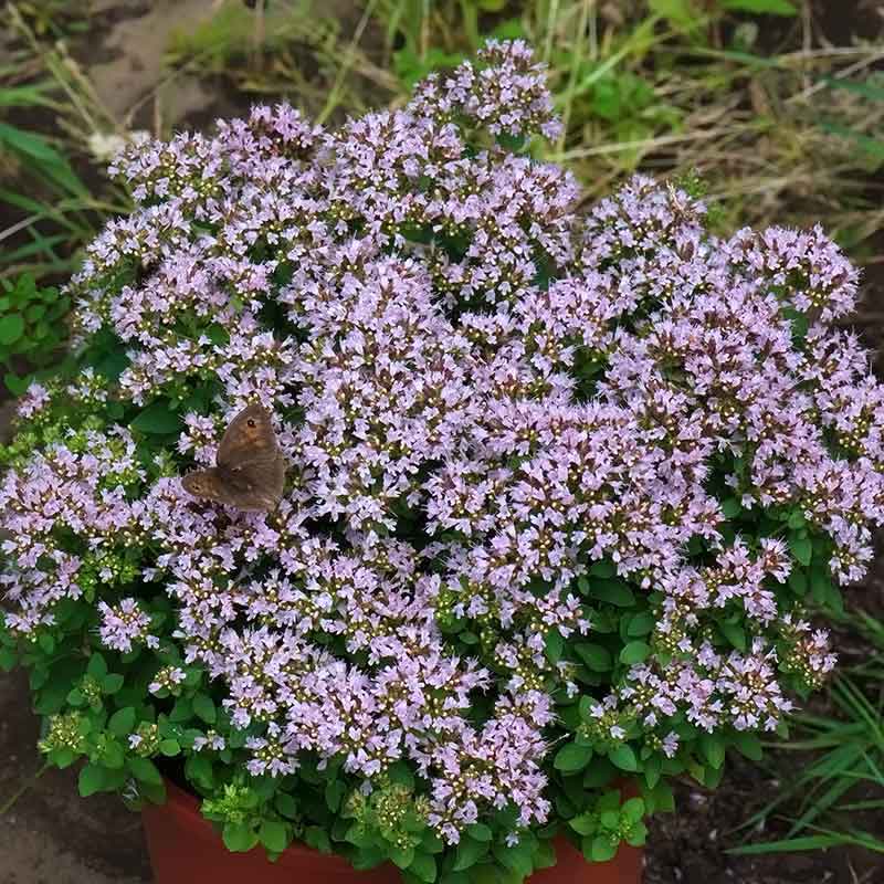 Compact Oregano er en krydderurt der bruges til pizza, italiensk mad, pålæg, frikadeller, suppe, fjerkræ, kød m.m. Den har en meget fin pizzaduft og egner sig til grønt drys. Sommerfugle- bi og insektplante. Lægeplante. Bunddække i sol.